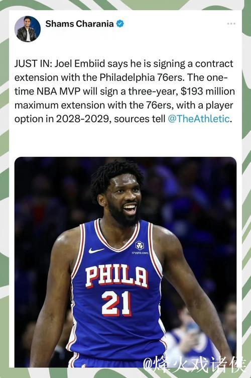 恩比德提前续约3年193亿背后76人的豪赌与重建逻辑 当费城76人官方宣布与乔尔·恩比德完成3年1 93亿美元提前续约时,整个联盟的目光再一次被这位中锋身上那种既脆弱又强大的矛盾气质所吸引 这份...
